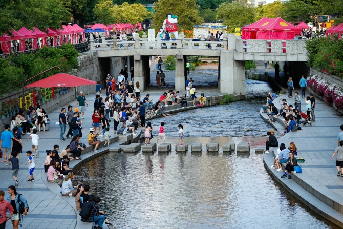 ↑這是2019年6月2日,在韓國(guó)首爾,人們?cè)谇逑ㄖ袘蛩蓍e。清溪川曾遭受嚴(yán)重污染,一度成為“臭水溝”,后又被蓋入地下,建立高架橋。首爾市從2002年7月起啟動(dòng)清溪川復(fù)原工程,經(jīng)過(guò)3年多的建設(shè),清溪川重新出現(xiàn)。據(jù)稱,重生的清溪川還可以調(diào)節(jié)首爾的氣溫,是一條名副其實(shí)的自然生態(tài)河流。新華社記者王婧嬙攝