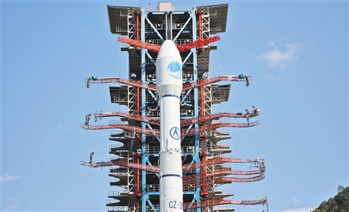 長征三號丙火箭矗立在發(fā)射塔架。 高楠攝