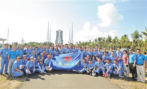 長征五號遙一任務火箭轉(zhuǎn)場發(fā)射隊合影。 (資料圖片)