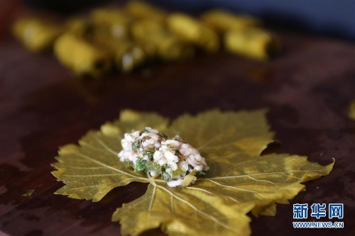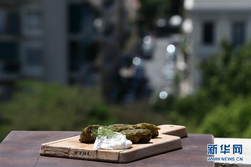 希臘版“粽子”:多瑪達琪亞 這是6月2日在希臘雅典拍攝的多瑪達琪亞(Dolmadakia)。 多瑪達琪亞(Dolmadakia)是希臘的一種特色食物,外形與粽子相似。它以米飯、西紅柿、青椒、茄子、西葫蘆、洋蔥、大蒜等為餡料,用葡萄葉包裹,可佐酸奶醬一起食用。