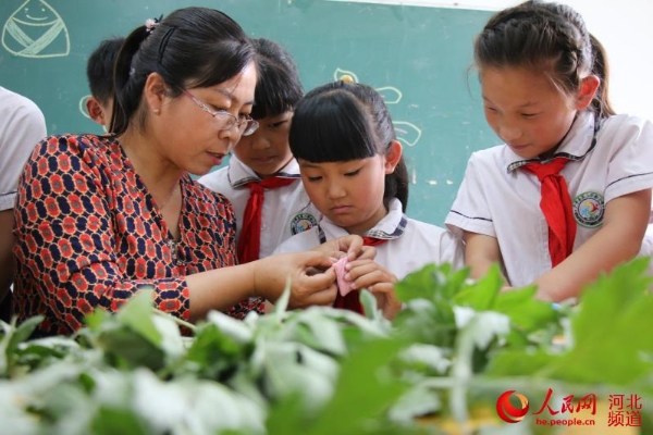 圖為6月4日河北省邯鄲市廣平縣第二實(shí)驗(yàn)小學(xué)學(xué)生在老師的幫助下縫制香囊。
