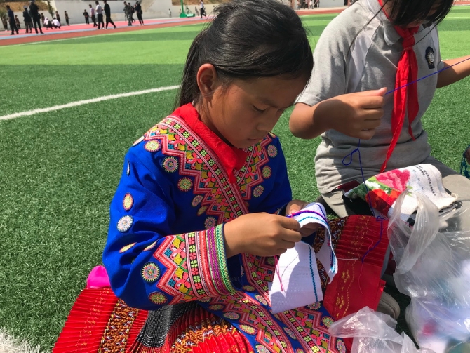 ?刺繡是苗族源遠流長的手工藝術,是苗族服飾主要的裝飾手段。9歲的項從珍說,自己最喜歡的就是苗服,她要把這項技藝學好。