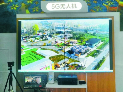 在世園會(huì)移動(dòng)5G展廳中體驗(yàn)空中世園景觀。