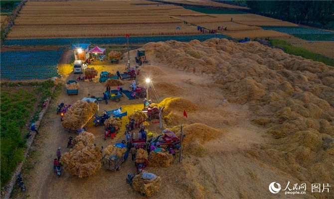 6月3日凌晨4點(diǎn)37分,費(fèi)縣芍藥山鄉(xiāng)的一個(gè)免費(fèi)脫粒點(diǎn)。陸啟輝攝