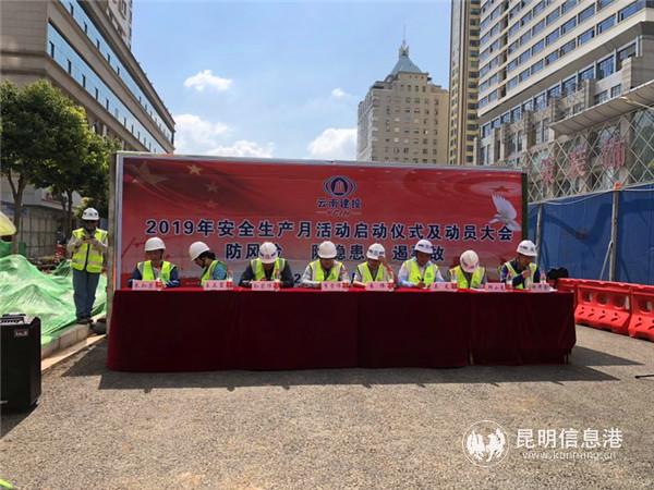 昆明信息港訊 今年6月是全國(guó)第18個(gè)“安全生產(chǎn)月”活動(dòng)的主題是“防風(fēng)險(xiǎn)、除隱患、遏事故”。為切實(shí)加強(qiáng)和推動(dòng)?xùn)|風(fēng)路項(xiàng)目建設(shè)中各參建單位的安全管理和宣傳工作,由東風(fēng)路道路恢復(fù)提升工程建設(shè)指揮部組織項(xiàng)目公司、總包單位以及各參建單位在東風(fēng)路現(xiàn)場(chǎng)開(kāi)展了2019年“安全生產(chǎn)月”啟動(dòng)儀式。旨在以活動(dòng)為契機(jī),采用各種方式深入宣傳貫徹習(xí)近平新時(shí)代中國(guó)特色社會(huì)主義思想和各級(jí)政府關(guān)于加強(qiáng)安全生產(chǎn)工作的決策部署,以及各類安全生產(chǎn)法規(guī)和知識(shí),從而進(jìn)一步增強(qiáng)全員應(yīng)急意識(shí),不斷提升各參建單位一線從業(yè)人員的安全意識(shí)、安全技能,提升安全生產(chǎn)和安全管理水平,讓安全生產(chǎn)知識(shí)進(jìn)企業(yè)、進(jìn)班組,營(yíng)造良好的安全生產(chǎn)氛圍,有效防范和遏制安全事故的發(fā)生。