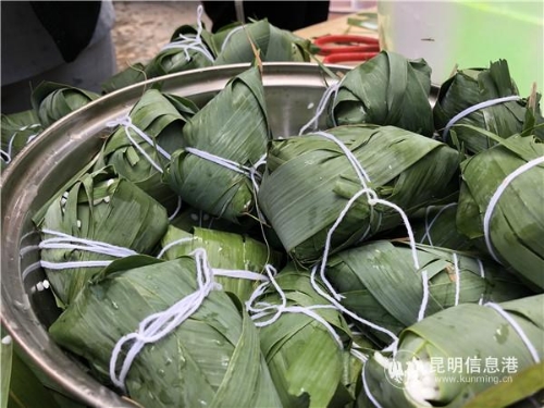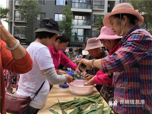 昆明信息港訊 記者甘凌菲 彩線輕纏紅玉臂,小符斜掛綠云鬟。6月5日上午,嚴家地社區(qū)端午節(jié)“粽葉飄香 濃情端午”活動舉行,手上戴著五色繩、包里裝著小香囊,居民們圍在一起包粽子,提前度過了一個特別的端午節(jié)。