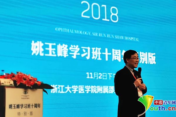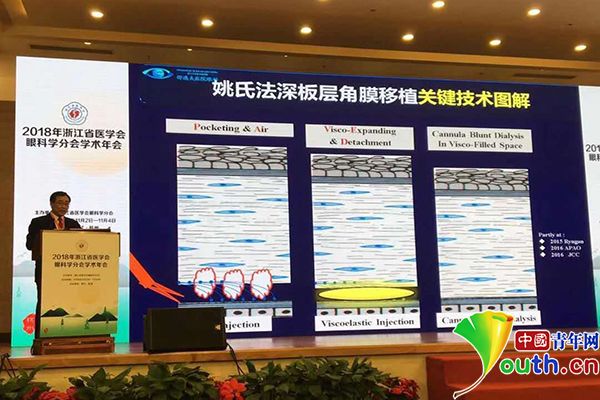 姚玉峰在2018年浙江省醫(yī)學(xué)會眼科學(xué)分會學(xué)術(shù)年會上講解姚氏法。資料圖