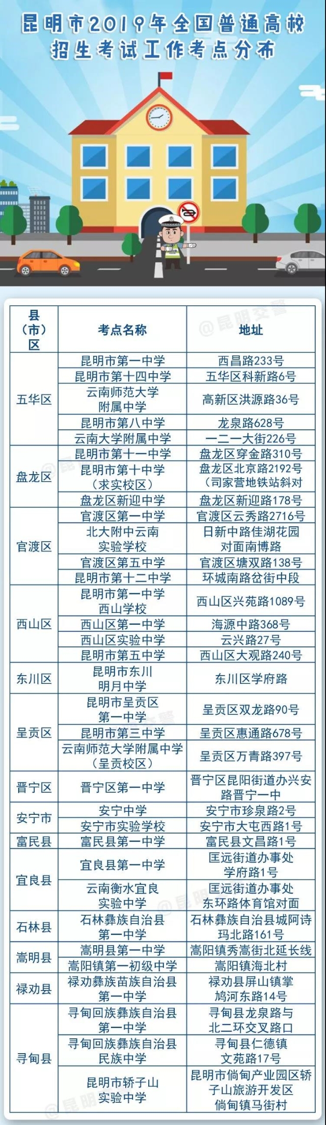 高考期間,昆八中合圍道路龍江路,紅錦路,金色大道沿線可臨時(shí)停放,時(shí)間為每科次考前1小時(shí)起至考后1小時(shí)止!