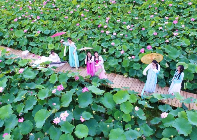 ?女子穿著華麗,沐芳浴蘭