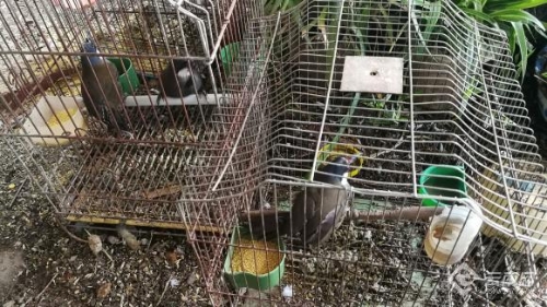 民警通過狹長的走道來到商店后面房屋,發(fā)現(xiàn)在緊挨廚房的陽臺上有一個(gè)用鐵絲網(wǎng)建成的鳥棚,二樓雜物間、衛(wèi)生間、過道內(nèi)多處可見“囚禁”小鳥的籠子。民警一走近,受驚的小鳥立刻喳喳亂叫、撲棱棱亂飛,一股鳥食夾雜鳥糞的味道讓人喘不過氣來。