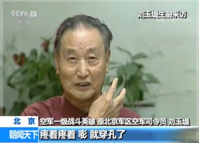 空軍一級戰(zhàn)斗英雄 原北京軍區(qū)空軍司令員 劉玉堤:我們就在這一萬來公尺,一頭攮(扎)下去,我耳朵壓得,嘭,就穿孔了,也不在乎這個,光想著把它打下來。當(dāng)時我們沒飛過海上飛行,海上飛行容易產(chǎn)生錯覺,天地不分,說扎下去就扎下去。