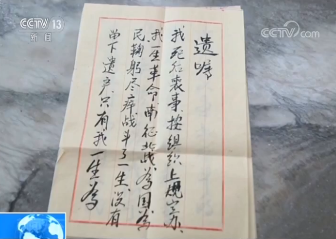 對子女來說,劉玉堤是威嚴(yán)的將軍和父親,對孫輩來說,他是和藹的爺爺、姥爺。2014年,一件意想不到的事情,讓全家更加了解了這位戰(zhàn)斗英雄的內(nèi)心。這是一份十七年前就立好的遺囑,直到劉玉堤病重,他才告訴老伴放在哪里。