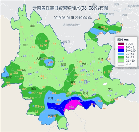 云南省6月1日08時(shí)至6月8日08時(shí)降水實(shí)況(云南省氣象服務(wù)中心供圖)