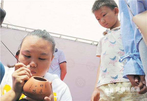 建水紫陶傳承人展示技藝。
