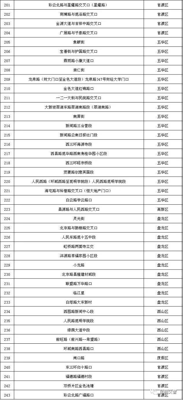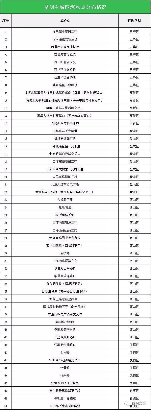目前,昆明地區(qū)已進入主汛期。雨季對行車安全帶來不利影響。據(jù)昆明市排水公司提供數(shù)據(jù)顯示,現(xiàn)昆明主城區(qū)淹水點243個(見下圖),雨天出行留意天氣預報,接聽路況信息,盡可能選擇公共交通出行方式;駕行途中集中精力,減速慢行,行經(jīng)淹水點注意觀察,切勿盲目行車。
