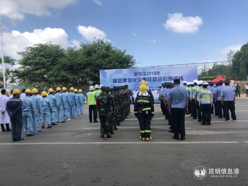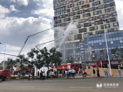 昆明信息港訊 通訊員施楊 黃曉雨 近日,呈貢區(qū)在聚賢街與致遠(yuǎn)路交叉口第七街區(qū)商業(yè)中心開展“2019年高層建筑火災(zāi)事故綜合應(yīng)急演練”。