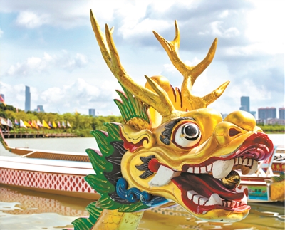 海珠濕地停放的龍舟,龍頭色彩斑斕,熠熠生輝。廣報(bào)全媒體記者陳憂子/攝