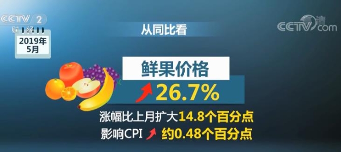從同比看,CPI漲幅比上月擴大0.2個百分點,其中,食品價格影響CPI上漲約1.48個百分點,特別是鮮果價格首當其沖,漲幅處于歷史高位,影響CPI上漲約0.48個百分點。