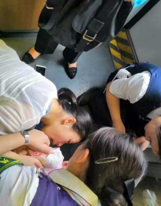 來到11號車廂后,金佳慧看到一名約1歲大的幼兒面色發(fā)白,已經(jīng)窒息。情況緊急,條件有限,她立即將幼兒趴在自己腿上,運用海姆立克急救法進行施救。