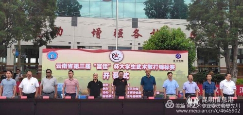 云南省第三屆“富佳”杯大學(xué)生武術(shù)散打錦標(biāo)賽14日在紅河州民族師范學(xué)校隆重舉行開幕儀式