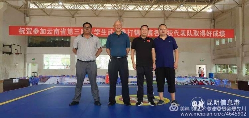 由云南省教育廳主辦、云南省學(xué)生武術(shù)專業(yè)委員會協(xié)辦、紅河州民族師范學(xué)校承辦的2019年第三屆“福佳”杯大學(xué)生武術(shù)散打錦標(biāo)賽,于6月14日上午9時,在紅河州民族師范學(xué)校田徑場隆重舉行開幕儀式;來自全省高等院校共計130余名教練、運動員及紅河州民族師范學(xué)校訓(xùn)練處千名體育健兒參加本次開幕儀式。開幕儀式上,全體領(lǐng)導(dǎo)、嘉賓、觀眾、領(lǐng)隊、教練、運動員及紅河州民族師范學(xué)校訓(xùn)練處千名體育健兒齊聲合唱《中華人民共和國國歌》;紅河州民族師范學(xué)校黨委書記、校長張兵老師致歡迎詞;裁判、運動員代表宣誓;云南省教育廳體衛(wèi)藝處徐忠祥處長宣布本次武術(shù)散打錦標(biāo)賽開幕;出席本次領(lǐng)導(dǎo)、嘉賓的有:云南省教育廳體衛(wèi)藝處徐忠祥處長、紅河州教育體育局黃春副局長、云南省體育局青少年競訓(xùn)科調(diào)研員許云川老師、云南省武術(shù)協(xié)會胡寶林主席、云南省武術(shù)協(xié)會楊喬生副主席、云南省學(xué)生武術(shù)專業(yè)委員會熊亞兵主任、紅河州民族師范學(xué)黨委書記、校長張兵老師及校領(lǐng)導(dǎo)班子成員。