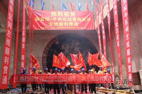 牛街莊站-朱家村站區(qū)間左線貫通現(xiàn)場(chǎng)。昆明軌道公司供圖