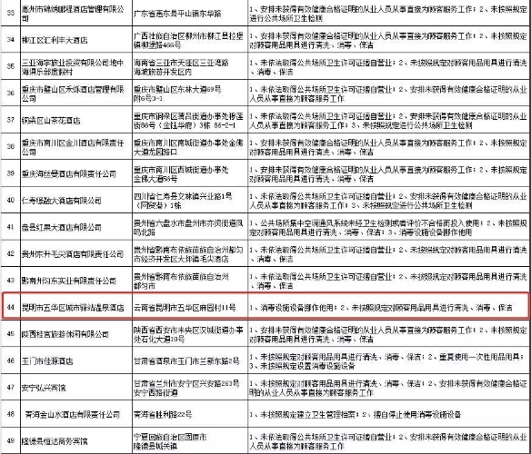 昆明市五華區(qū)城市驛站溫泉酒店(云南省昆明市五華區(qū)麻園村11號 )1、消毒設(shè)施設(shè)備挪作他用;2、未按照規(guī)定對顧客用品用具進(jìn)行清洗、消毒、保潔。