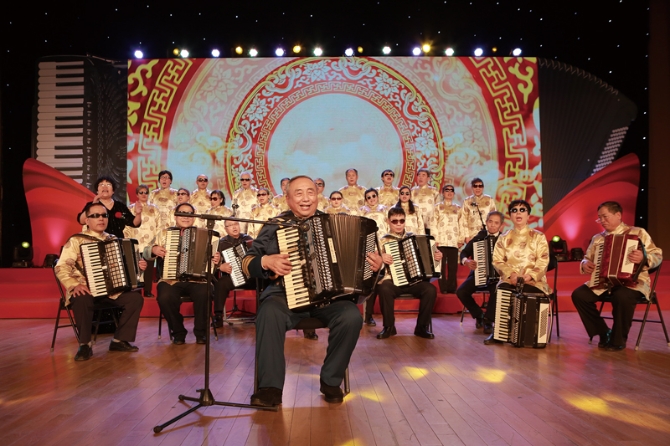 “北京榜樣”任士榮,是新中國手風琴事業(yè)泰斗級人物,1996年退休后自告奮勇成為一名志愿者,無論年齡、職業(yè),只要喜歡音樂,都可以免費跟他學琴。20多年來,他每周兩次到社區(qū)免費授課。圖為他教過的盲人學員在舉辦音樂會。 首都文明辦供圖