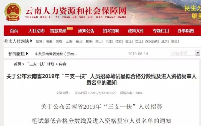 6月16日,掌上春城記者從省人社廳網(wǎng)站獲悉,2019年“三支一扶”人員招募筆試最低合格分?jǐn)?shù)線及進(jìn)入資格復(fù)審人員名單已經(jīng)公布,你考了多少分?排名第幾?趕快來(lái)查查!!!