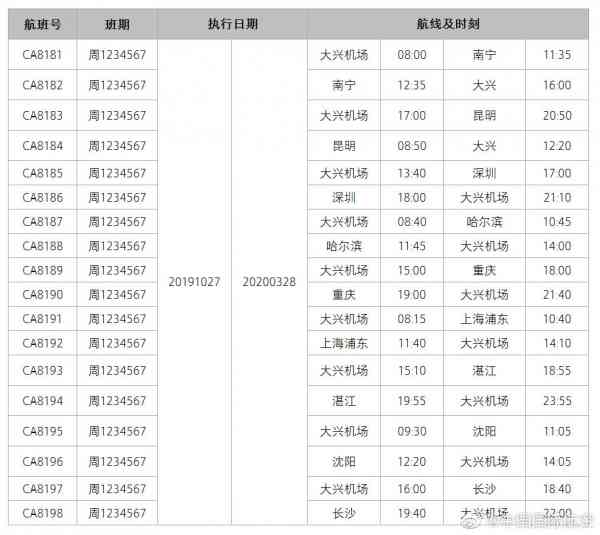 北京日報客戶端6月15日消息,國航最新公布了在大興機場起降的航班。2019年冬春季,國航將在大興新機場新增部分國內(nèi)航線航班,大興始發(fā)飛往重慶、浦東、昆明、南寧、哈爾濱、深圳、長沙、沈陽、湛江航線,每天一班。