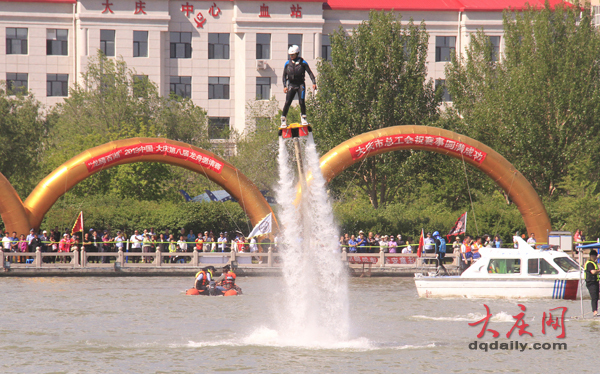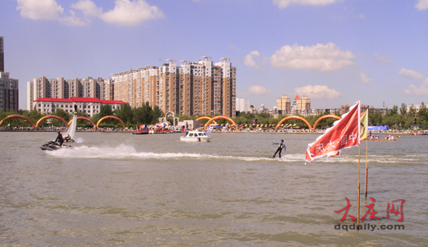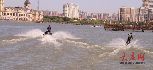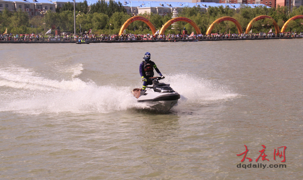 摩托艇劃水表演。
