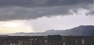市民陸先生的投稿作品,是幾天前用手機拍攝的,地點為恒大云報華府、自己父母家的陽臺。在照片中,睡美人面部輪廓清晰,一頭長發(fā)散落于滇池?!澳鞘窍麓笥昵芭牡模ッ魇袇^(qū)已經(jīng)烏云壓頂了,可往西邊看過去,晉寧、??诘姆较蜻€有太陽?!闭掌械奶旃?,一半黑云壓城,一半猶如鵝黃色的暖緞,一明一暗映襯下睡美人楚楚動人。陸先生說,他是地道的昆明人,家就在現(xiàn)在恒大云報華府的所在地陸家營村?!靶r候,昆明還沒有多少高樓,不用刻意去哪里,坐在家門口往西邊看,睡美人一覽無余。抬著小板凳坐在家門口,聽大人講不同版本的西山故事?!泵刻於寄芸吹剿廊耍谀暧讜r陸先生并沒有覺得有什么稀奇。然而,隨著城市發(fā)展,高樓拔地而起,自己離家求學(xué),家也搬離了原來的位置,睡美人漸漸只在他心中留下一個淡淡的輪廓。直到后來父母將家搬回舊址,在已經(jīng)“長高”了的新家,他再次看到了睡美人的曼妙身姿,喚醒了久違的記憶。