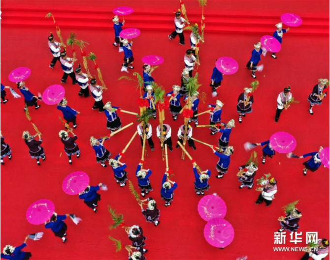 當(dāng)日,廣西龍勝各族自治縣舉辦第八屆龍脊梯田文化節(jié),人們開(kāi)展民俗巡游、彈唱琵琶歌和蘆笙踩堂等活動(dòng),向中外游客展示多姿多彩的民族文化。