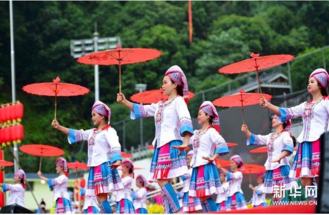 6月17日,演員在廣西龍勝各族自治縣龍脊梯田文化節(jié)上表演節(jié)目。新華社發(fā)黃勇丹/攝