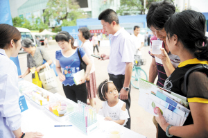 工作人員向市民宣講食品安全知識(shí)。記者趙偉攝