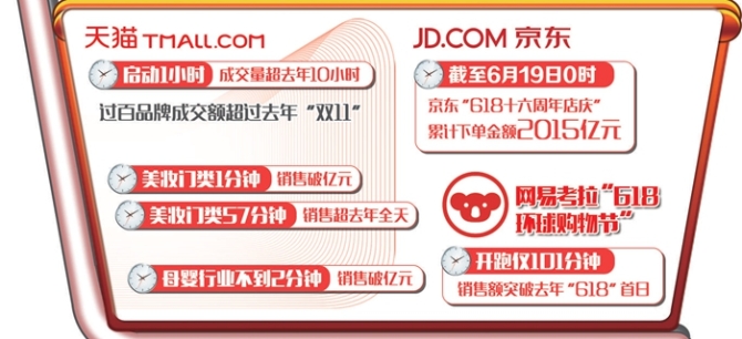 天貓“618”啟動1小時,成交量超去年10小時,過百品牌成交額超過去年“雙11”;