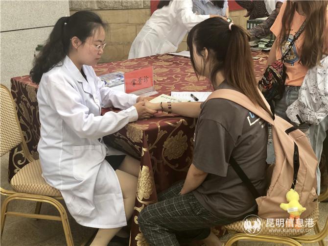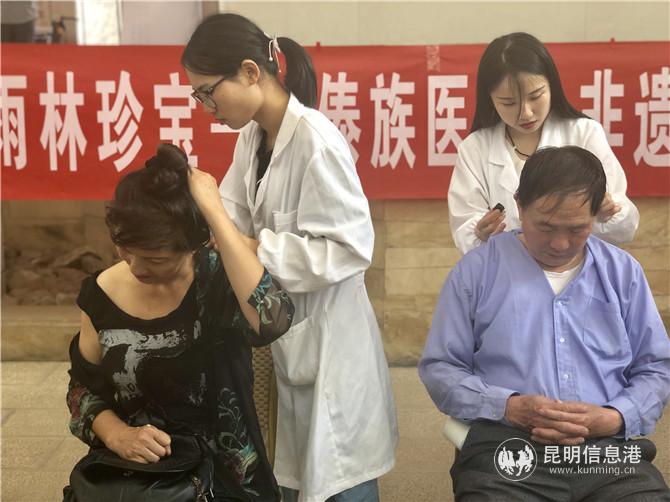 活動當(dāng)天,昆明市博物館古幢廳同時舉行了傣醫(yī)藥特色療法體驗活動?;顒臃譃槿齻€區(qū)城進行,第一區(qū)域免費向觀眾發(fā)放本次展覽宣傳冊頁、體溫計等保健用品;第二區(qū)域作為傣醫(yī)藥特色療法體驗活動區(qū),來由自云南中醫(yī)藥大學(xué)的部分研究生為觀眾現(xiàn)場進行傣醫(yī)拖擦包、錘筋療法、掌骨診、刮痧等特色療法體驗;第三區(qū)域為免費義診區(qū),云南中醫(yī)藥大學(xué)教授、云南省名中醫(yī)、中醫(yī)消化及肝膽病專家張超主任醫(yī)師,云南中醫(yī)藥大學(xué)教授、云南省名中醫(yī)、中醫(yī)男科、婦科專家王寅主任醫(yī)師,云南中醫(yī)藥大學(xué)教授、中醫(yī)婦科、內(nèi)科專家夏麗教授,云南省著名中醫(yī)婦科、兒科專家、省婦幼保使院廖龍祥主任醫(yī)師,云南省民族民間醫(yī)藥學(xué)會副會長、中醫(yī)內(nèi)科專家康云山主任,云南中醫(yī)藥大學(xué)中醫(yī)婦科、內(nèi)科何婧琳講師、云南中醫(yī)藥太學(xué)李瓊超傣醫(yī)博士等專家現(xiàn)場免費為市民號脈、咨詢、開處方。