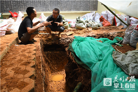 昆明信息港訊(昆明日?qǐng)?bào) 全媒體記者廖晶蓉 楊艷輝)開(kāi)挖復(fù)壯溝、設(shè)置通氣井、增加營(yíng)養(yǎng)劑,6月19日,記者從昆明市曇華寺公園了解到,該公園正在對(duì)園內(nèi)最著名的樹(shù)王、400年樹(shù)齡的優(yōu)曇古樹(shù)進(jìn)行首次大規(guī)模的搶救性復(fù)壯保護(hù),整個(gè)過(guò)程謹(jǐn)慎嚴(yán)苛猶如考古,通過(guò)一系列科學(xué)方法為古樹(shù)做了恢復(fù)活力的“大手術(shù)”。