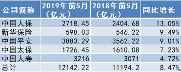 近日,五家A股上市險(xiǎn)企已陸續(xù)披露完成今年前5月保費(fèi)收入公告。數(shù)據(jù)顯示,五家A股上市險(xiǎn)企2019年前5月共實(shí)現(xiàn)保費(fèi)收入1.21萬(wàn)億元,同比增長(zhǎng)8.47%,環(huán)比增長(zhǎng)14.64%,增速較一季度時(shí)有所放緩。