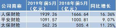 五家A股上市險(xiǎn)企前5月原保費(fèi)收入情況(單位:億元)