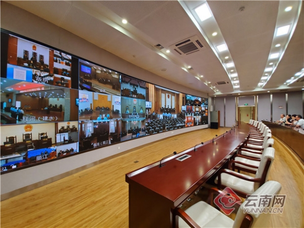 云南高院云數(shù)據(jù)中心遠(yuǎn)程視頻觀看各中基層法院開庭宣判現(xiàn)場。楊曌 攝