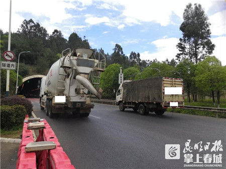 隧道內(nèi)車(chē)流量大,貨車(chē)、私家車(chē)絡(luò)繹不絕。
