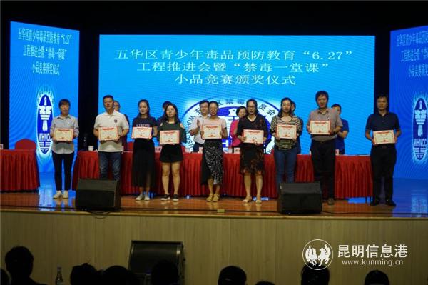 昆明信息港訊 記者合宇聰 6月21日,昆明市五華區(qū)禁毒委召開“五華區(qū)青少年毒品預(yù)防教育‘6.27’工程推進(jìn)會(huì)”暨中小學(xué)“禁毒一堂課”小品競賽活動(dòng)頒獎(jiǎng)儀式。