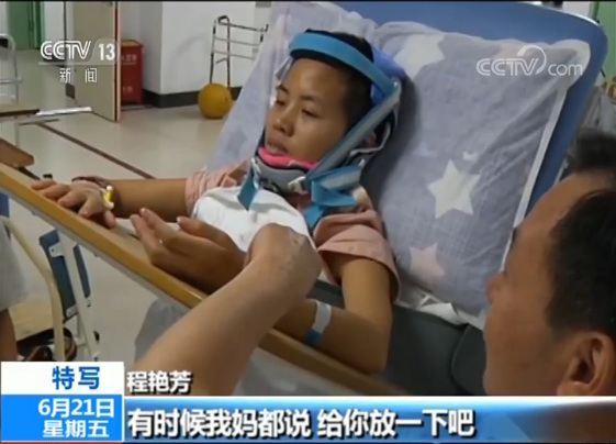 脊椎骨折,脊髓受損的程艷芳,從昏迷中醒來后就一直躺在床上。剛知道自己的病情時,她也消沉過,不過,這個堅強的姑娘很快就告訴自己,要接受現(xiàn)實向前看,努力向好的方向發(fā)展。