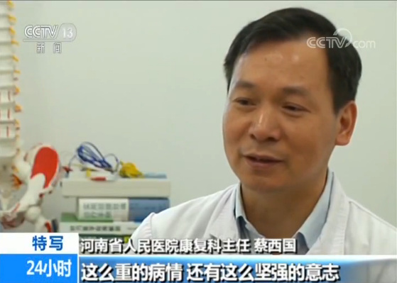 河南省人民醫(yī)院康復科主任 蔡西國:這么重的傷情,還有這么堅強的意志,這點讓我們很感動。