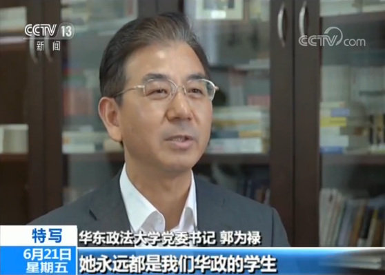 華東政法大學黨委書記 郭為祿:對我們來說,不論她今后在哪里工作、生活,她永遠都是我們華政的學生,都是我們華政的校友。