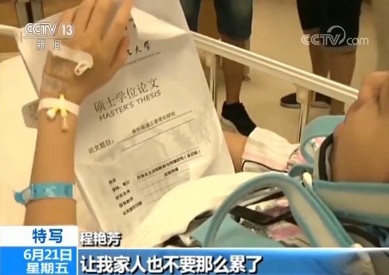 在治療過程中,程艷芳最惦記的就是自己的畢業(yè)論文。按照學校計劃,她所在的專業(yè)在5月24號進行論文答辯,看著畢業(yè)的日期越來越近,程艷芳心里非常著急。
