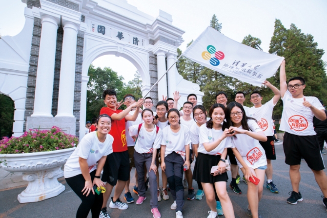 ?每年的畢業(yè)季,清華大學(xué)都會(huì)舉行畢業(yè)長(zhǎng)跑,即將離開(kāi)母校的學(xué)子們沿著精心設(shè)計(jì)的路線,依次跑過(guò)那些承載著清華記憶的場(chǎng)所,重溫“自強(qiáng)不息 厚德載物”的校訓(xùn),上好離校前的“最后一課”。圖為2018年7月4日,畢業(yè)生們?cè)谥黝}為“擁抱新時(shí)代 青春正起航”的長(zhǎng)跑活動(dòng)中在二校門(mén)前合影。 清華大學(xué) 李浩然/攝