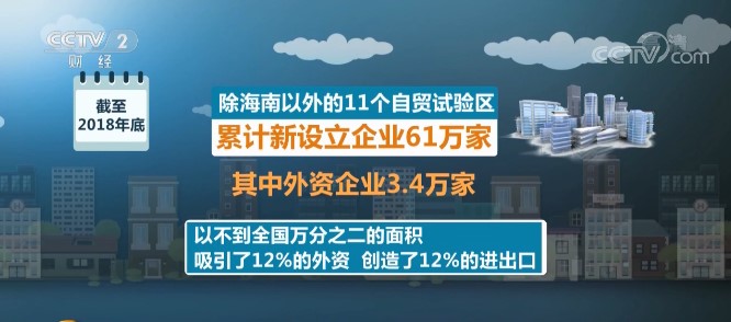 ?截至2018年底,除海南以外的11個(gè)自貿(mào)試驗(yàn)區(qū)累計(jì)新設(shè)立企業(yè)61萬(wàn)家,其中外資企業(yè)3.4萬(wàn)家,以不到全國(guó)萬(wàn)分之二的面積吸引了12%的外資,創(chuàng)造了12%的進(jìn)出口,在打造法制化、國(guó)際化、便利化營(yíng)商環(huán)境中發(fā)揮了引領(lǐng)作用。