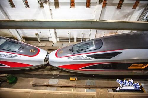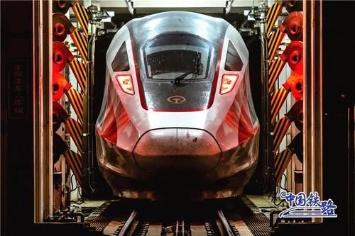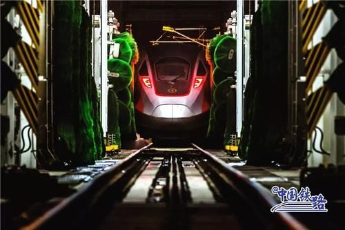 白天,復(fù)興號(hào)在鐵道線上飛馳,運(yùn)送南來(lái)北往的旅客;夜晚,TA們回到動(dòng)車檢修庫(kù),在那里會(huì)有許多“藍(lán)衣人”負(fù)責(zé)復(fù)興號(hào)下班后的“夜生活”,比如“洗澡洗澡洗澡”。